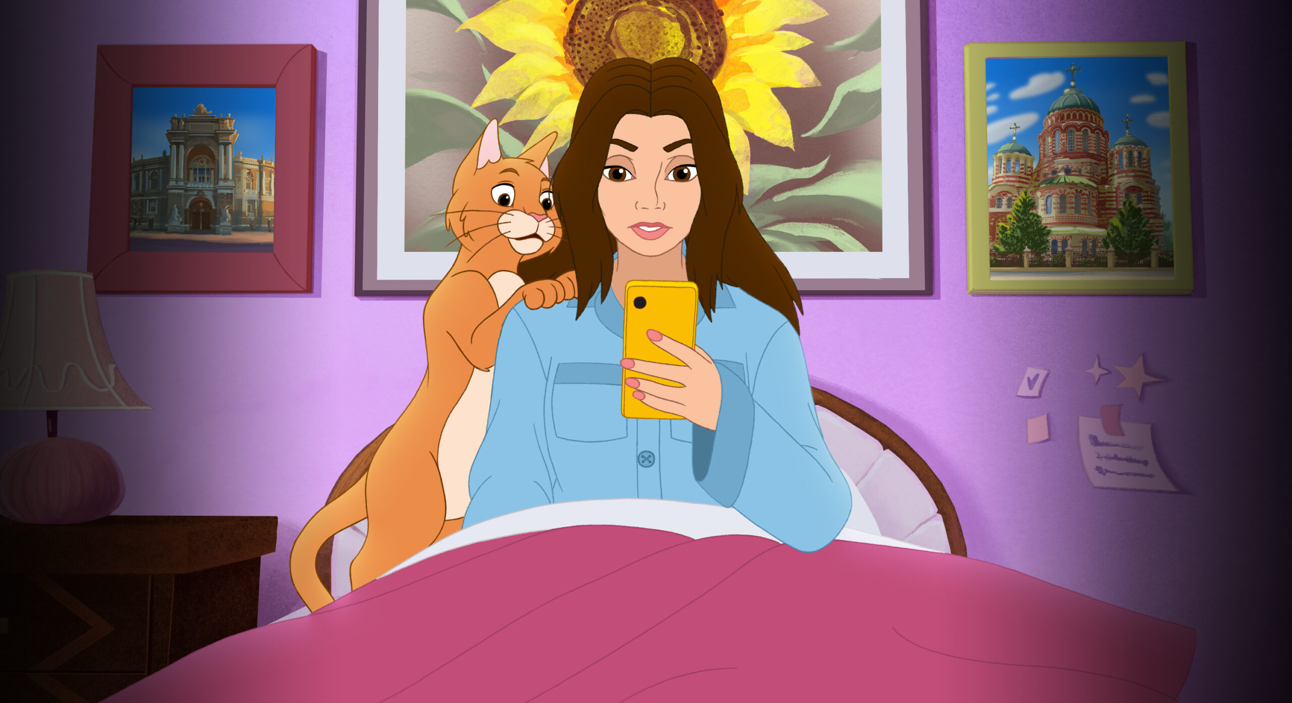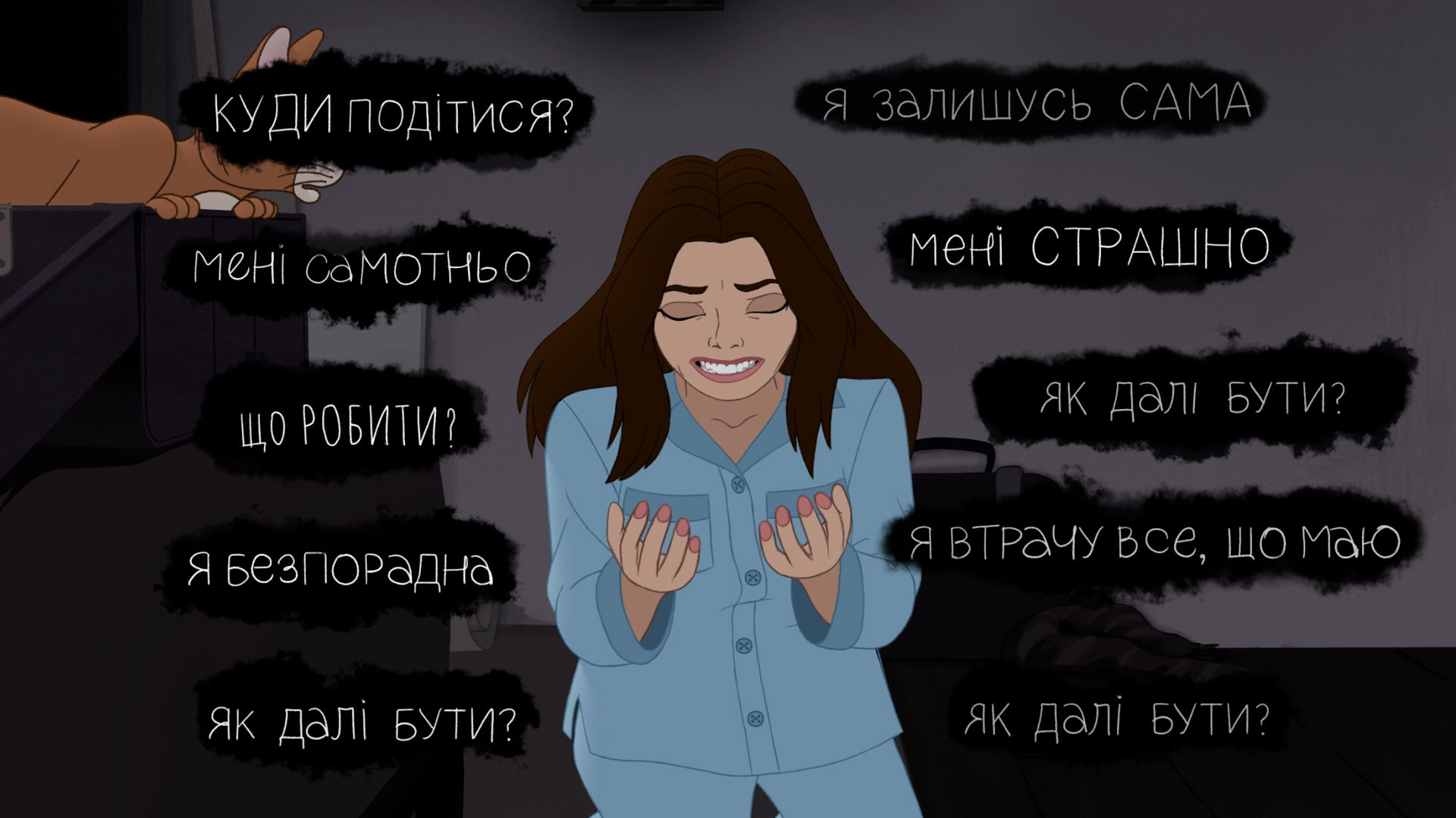 Obiimy (“embrace”) is a story about trauma, isolation, and the healing power of connection. Set on the morning of the Russian invasion of Ukraine, the film follows a young woman named Kateryna as she confronts the sudden rupture of ordinary life. Alone in her apartment, accompanied only by her cat Ponchyk, she moves through shock, fear, and uncertainty.
